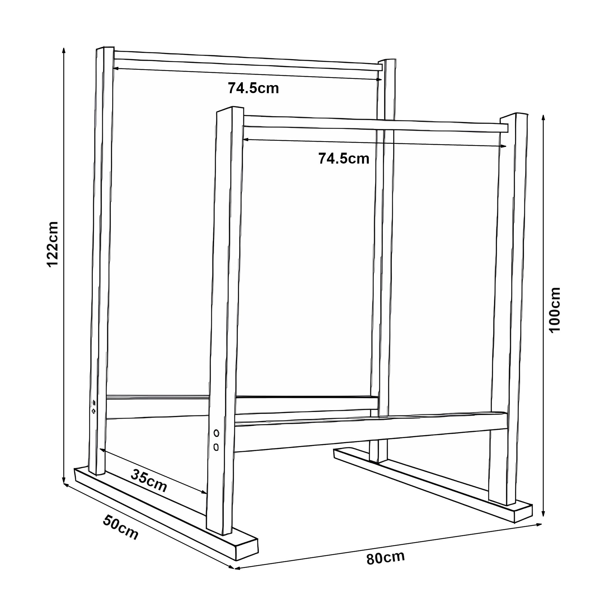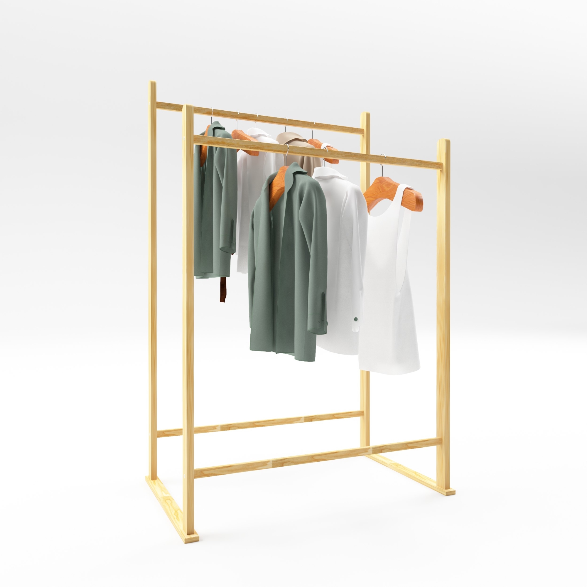 Suport pentru haine Mariehamn din lemn natural, cu 2 bare, 122x80x50 cm