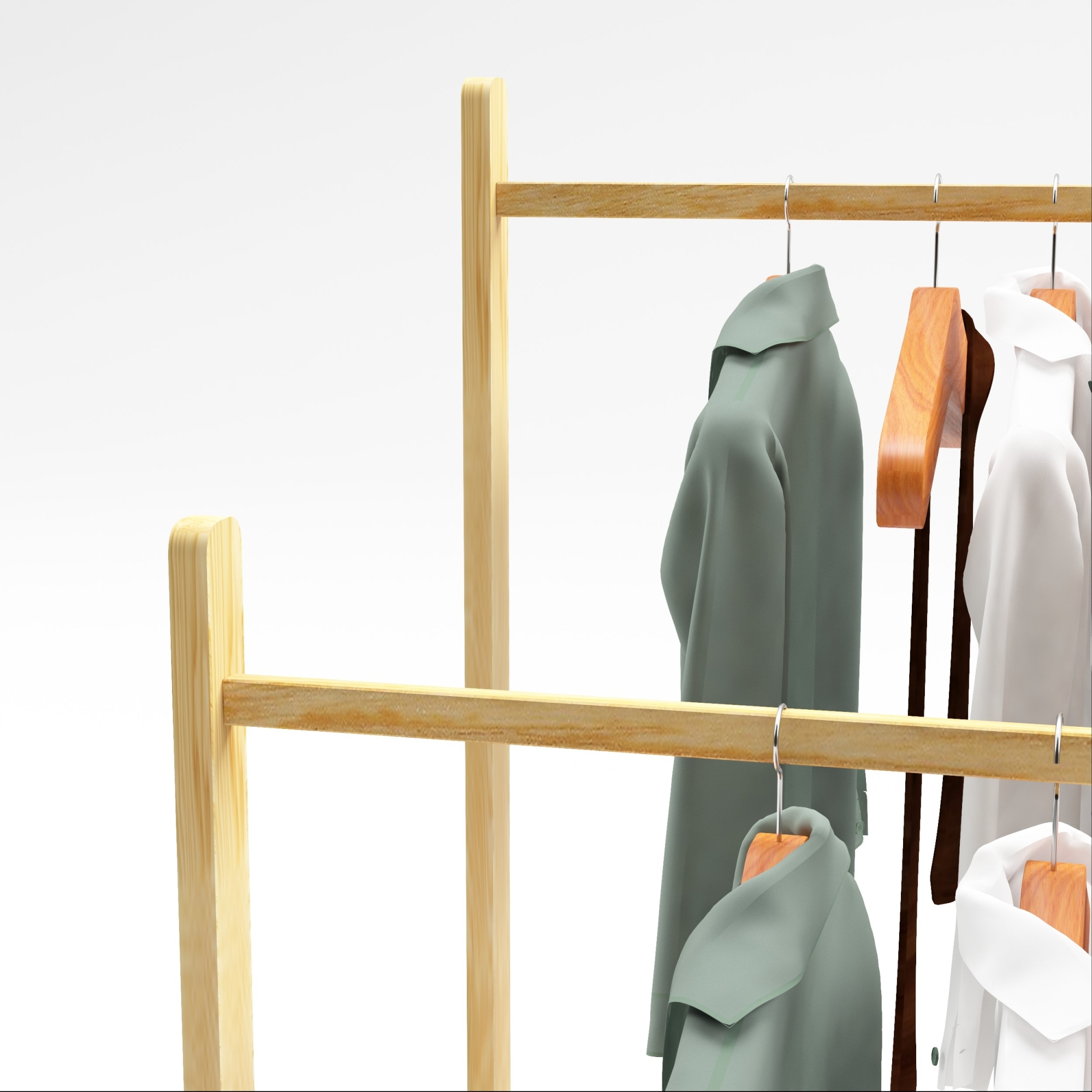 - suport haine din lemn cu design minimalist și aspect natural