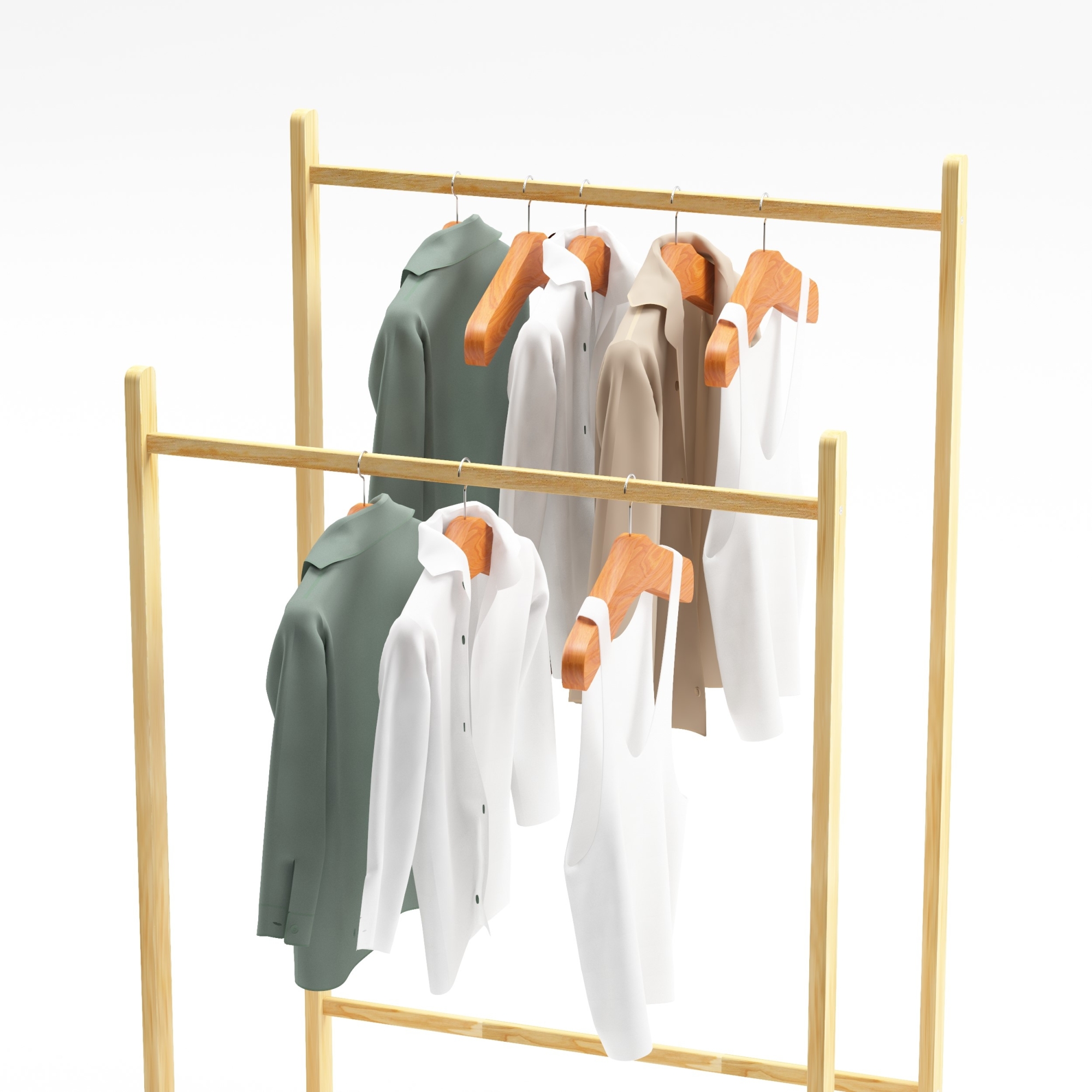 Datorită celor două bare pentru umerașe, poți separa ușor jachetele, cămășile, paltoanele sau accesoriile. Designul simplu și modern se integrează armonios în diverse stiluri de amenajare, iar construcția stabilă îl face potrivit pentru utilizare de zi cu zi.