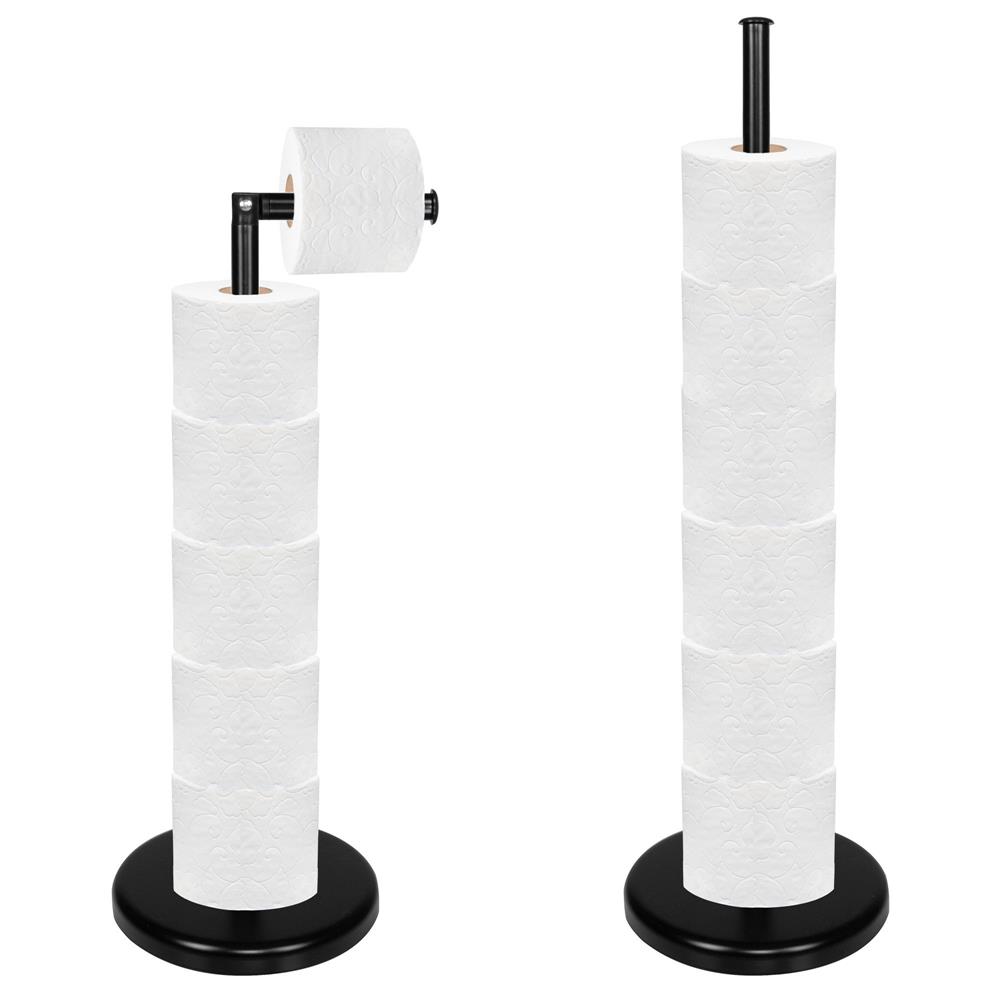 Suport pentru hartie igienica 2 in 1 cu tija mobila, 68,5 cm, negru