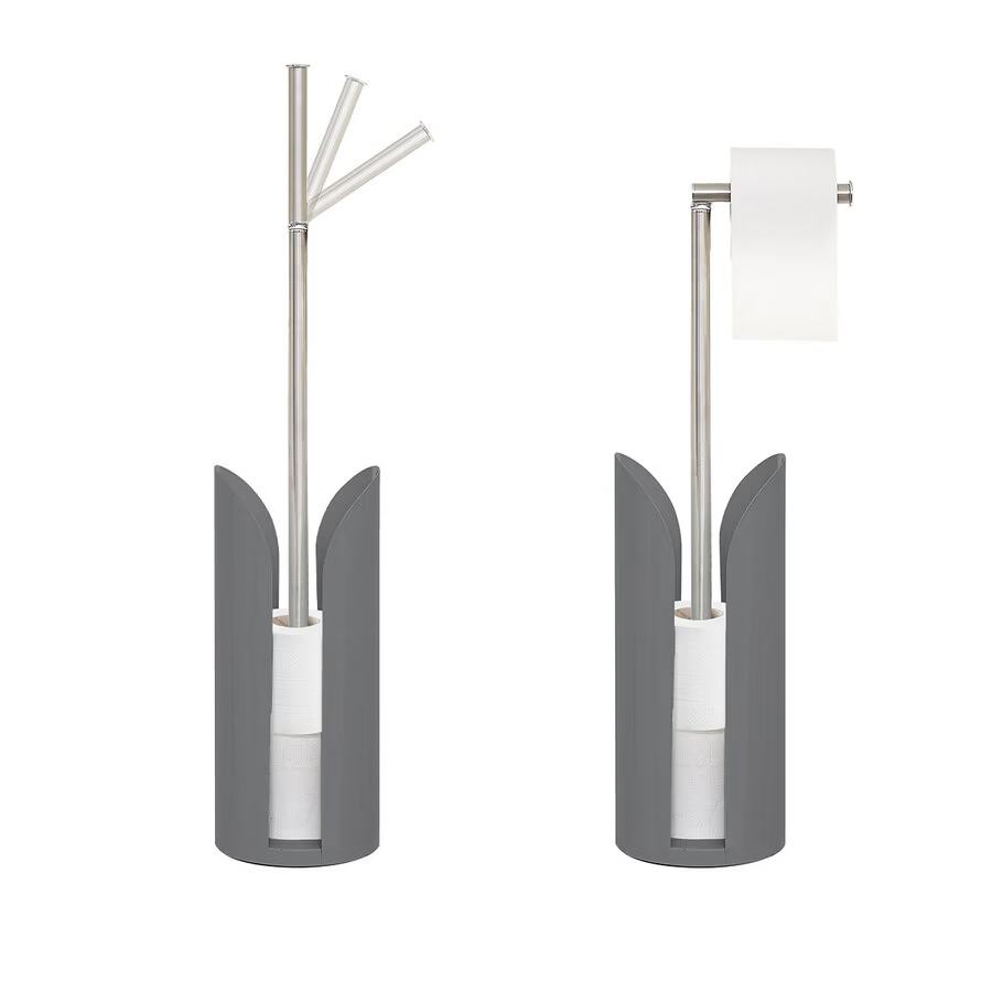 Utilizare: Așază suportul lângă vasul de toaletă pentru acces rapid la hârtia igienică și pentru a păstra rolele de rezervă organizate, curate și mereu la îndemână.