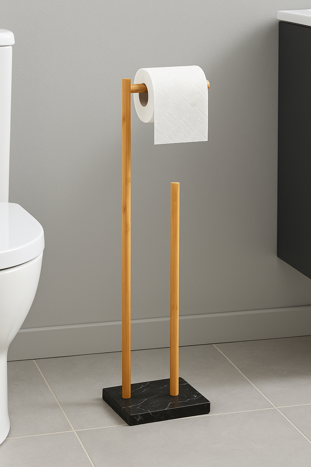 Alege un suport pentru hartie igienica practic si elegant, ideal pentru o baie bine organizata. Modelul 5Five Lea imbina aspectul natural al bambusului cu o baza solida din polirasina, oferind stabilitate si un plus de stil. Designul compact iti permite sa pastrezi rola in uz si rezervele la indemana, fara montaj pe perete.