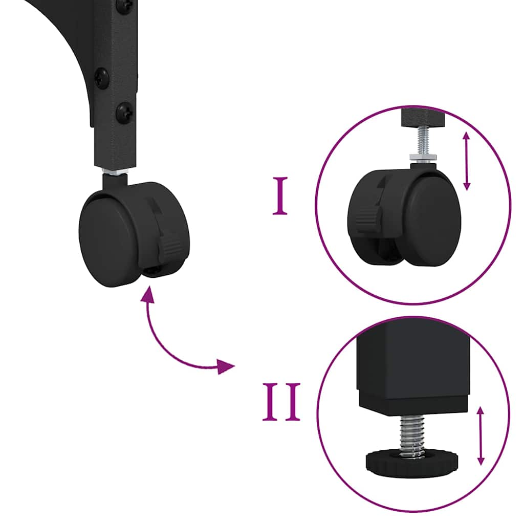 - Roți manevrabile: Suportul are roți ce facilitează mișcarea ușoară. E perfect când vrei să-l repoziționezi pentru curățenie sau să-l muți între camere. Roțile se rotesc fără efort, iar mecanismul de blocare asigură stabilitate.