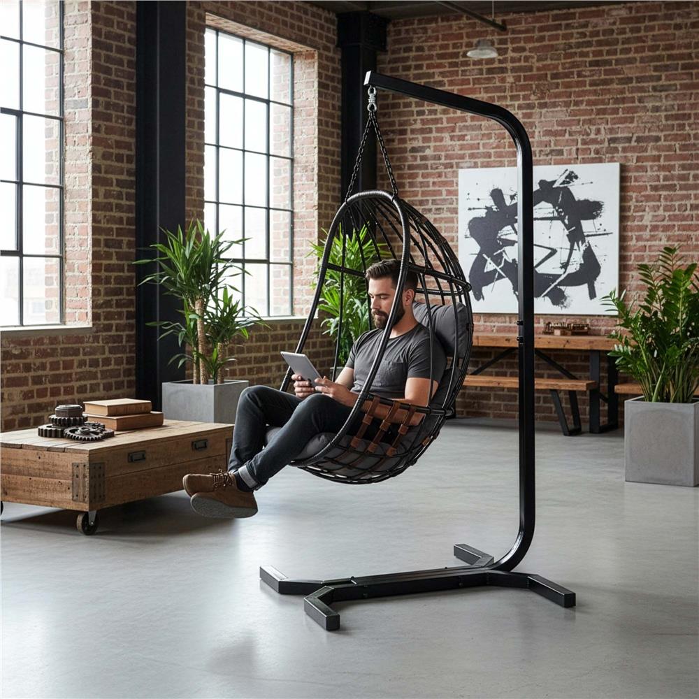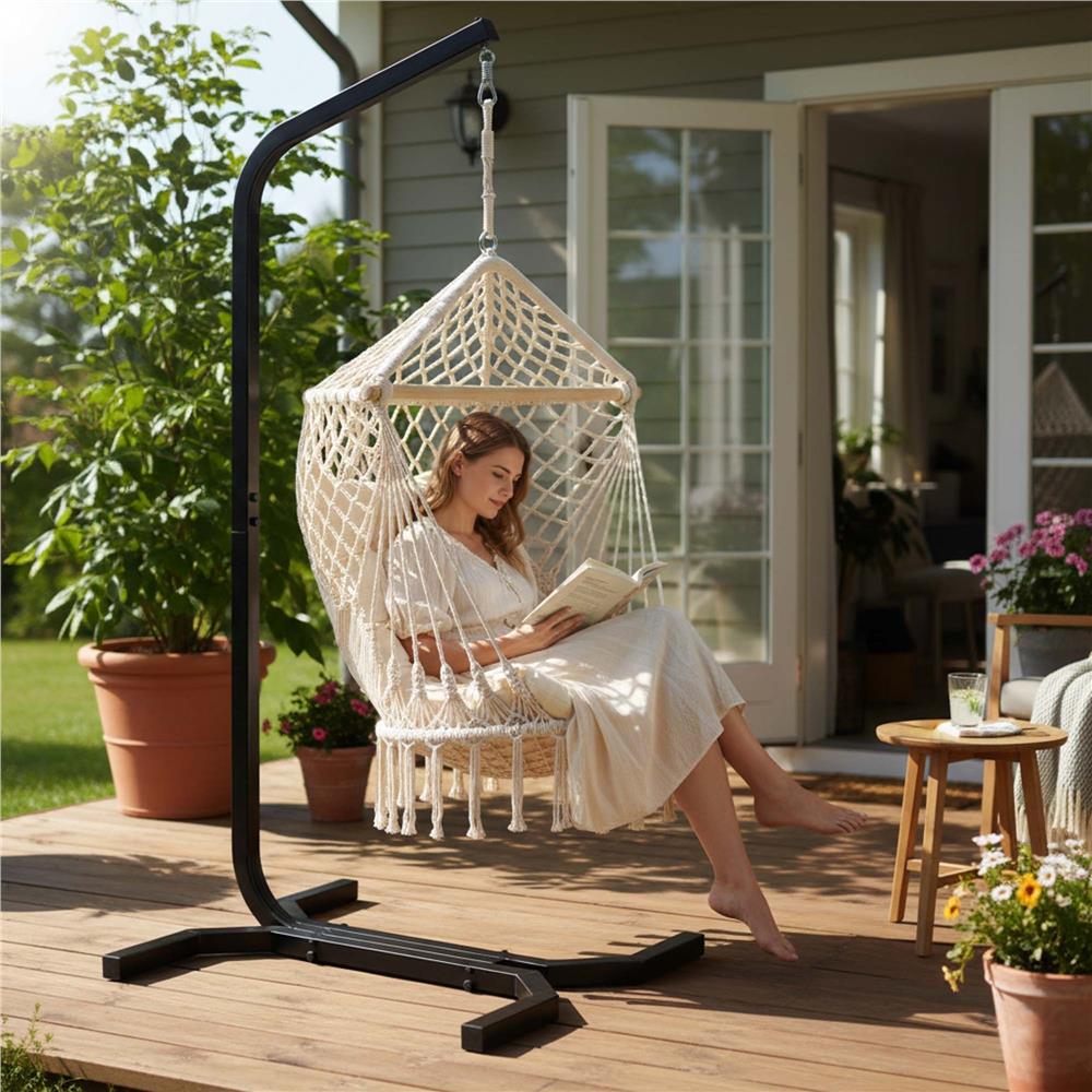 Alege un suport pentru leagăn suspendat practic și rezistent, potrivit pentru momente de relaxare în grădină, pe terasă sau chiar în interior. Realizat din oțel vopsit electrostatic, acest suport oferă stabilitate foarte bună și susține o greutate de până la 180 kg, fiind ideal pentru un scaun tip cuib sau pentru un hamac suspendat.