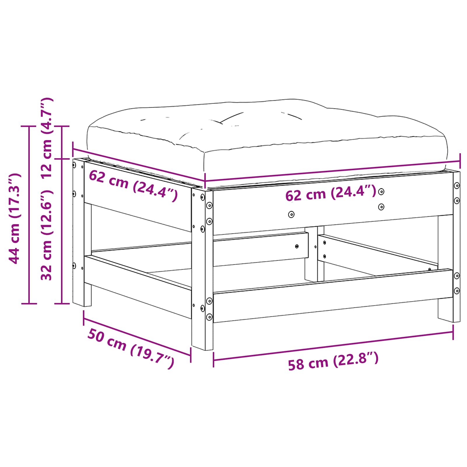 - 1 x Suport pentru picioare: 62 x 62 x 32 cm (L x l x î)