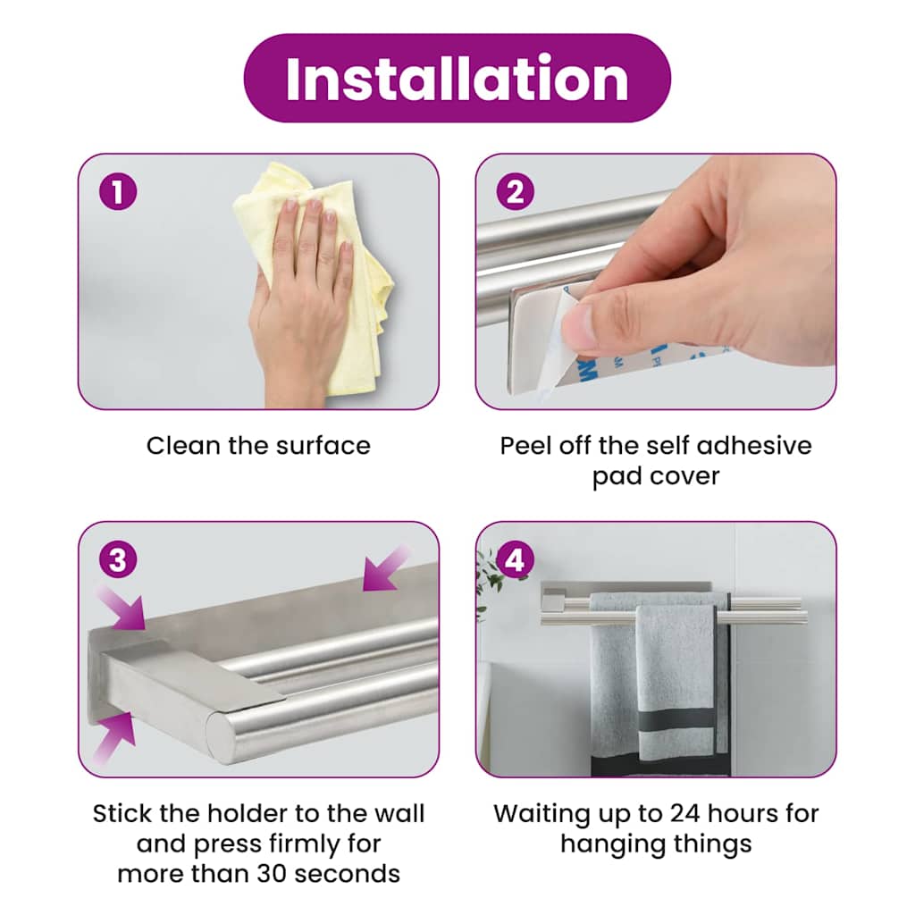 Suport pentru prosoape Argintiu 40 x 9 x 4 cm Oțel inoxidabil GartenMobel Dekor