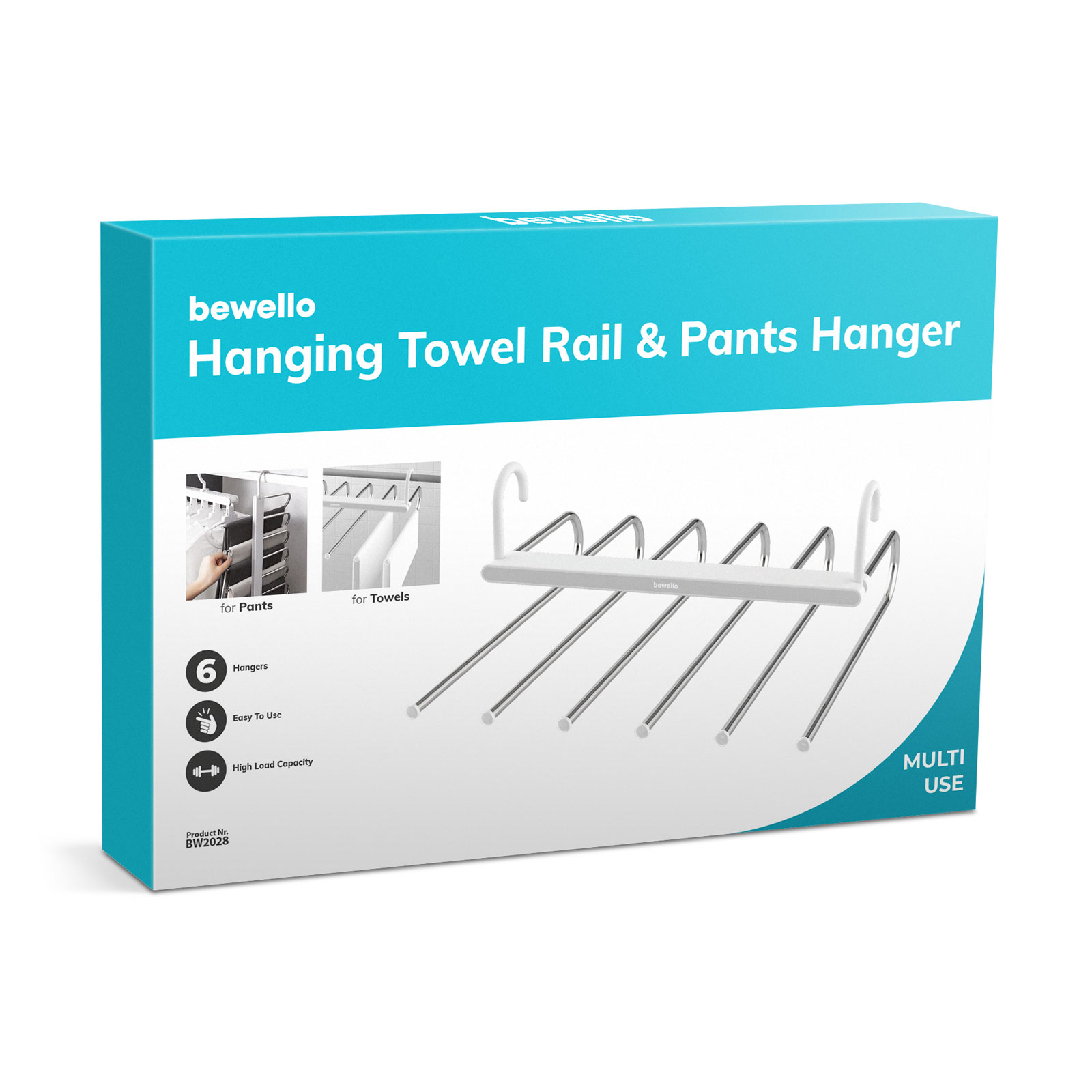 Poate fi prins in orice dulap cu ajutorul umeraselor, fiind potrivit pentru depozitarea a 6 pantaloni in acelasi timp.