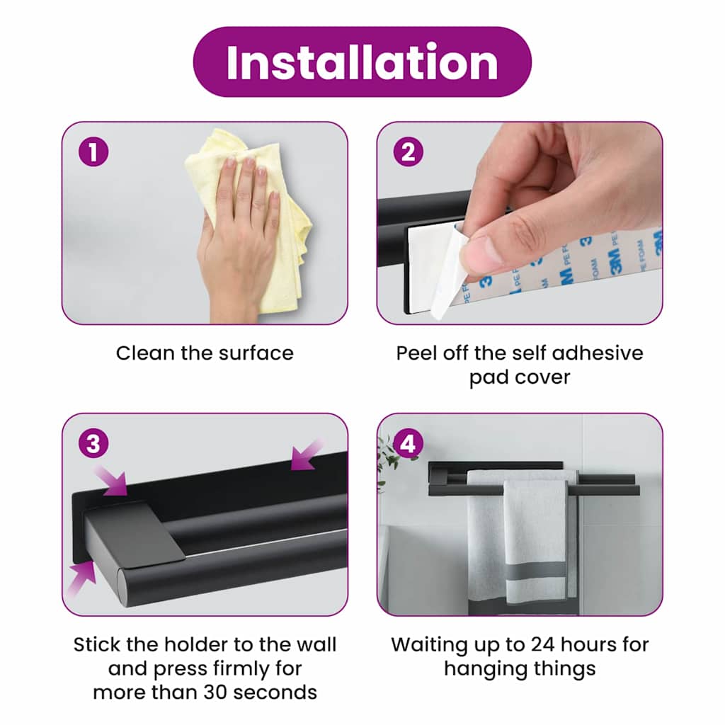 Suport pentru prosoape Negru 40 x 9 x 4 cm Oțel inoxidabil GartenMobel Dekor
