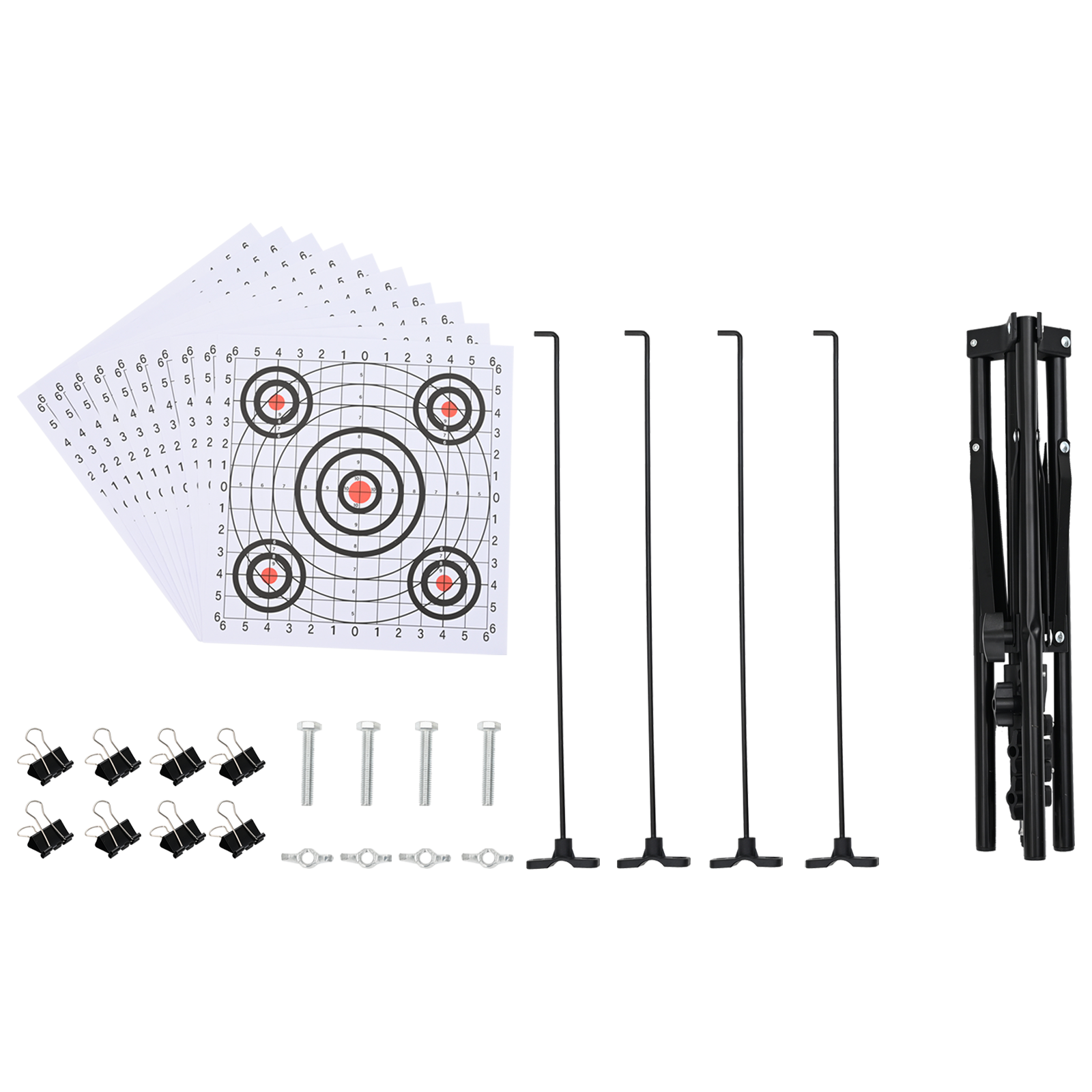 - Pachet Complet: Kitul vine cu un suport pentru ținte și zece foi de țintă, deci ai tot ce-ți trebuie direct din cutie. E simplu să-l instalezi și te ajută să te concentrezi pe practică.