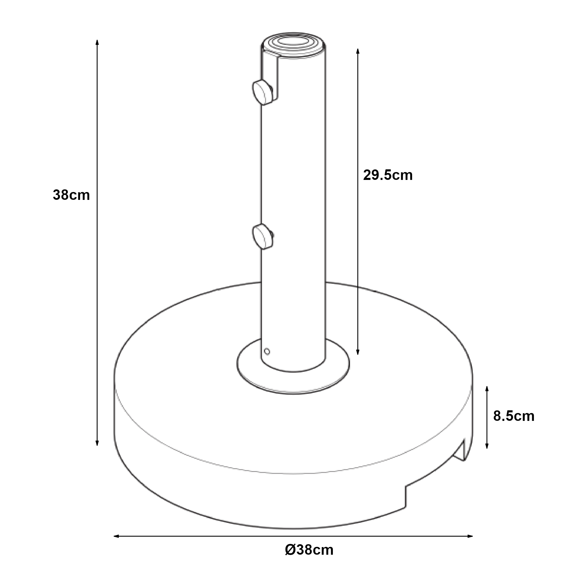 - Dimensiune bază (Ø x H): 38 x 8,5 cm