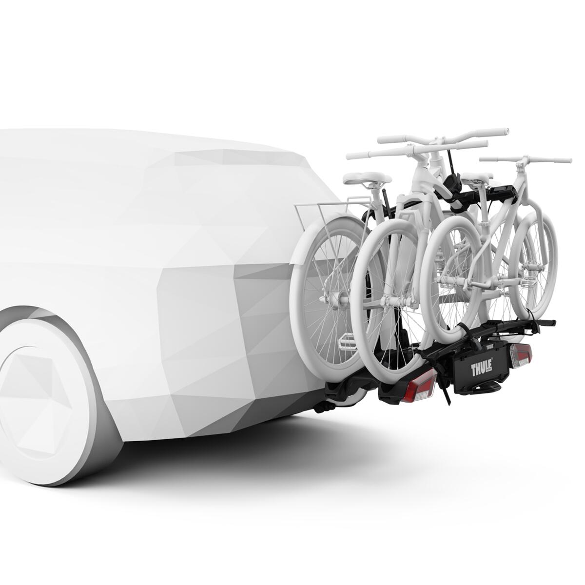 Suportul pentru 2 biciclete Thule EasyFold 3 este alegerea ideală pentru transport sigur, rapid și comod pe mașină. Se montează pe cârligul de remorcare, are un design compact și pliabil, fiind ușor de depozitat acasă, în portbagaj sau în garaj. Este potrivit pentru biciclete clasice, MTB și chiar pentru unele biciclete electrice, datorită capacității mari de încărcare.