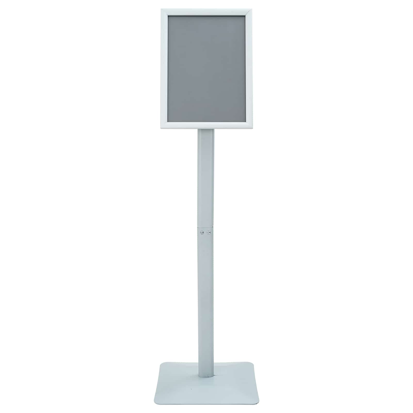 Suportul ăsta pentru afișe pe soclu e un instrument publicitar versatil și super modern, perfect pentru afaceri care au nevoie să afișeze materiale promoționale, meniuri sau anunțuri, atât în interior cât și în exterior. Are un cadru elegant din aluminiu și piese din fontă care îi dau un look contemporan. Finisajul argintiu completează perfect birouri, magazine sau evenimente și face ca mesajele tale să fie mai vizibile.