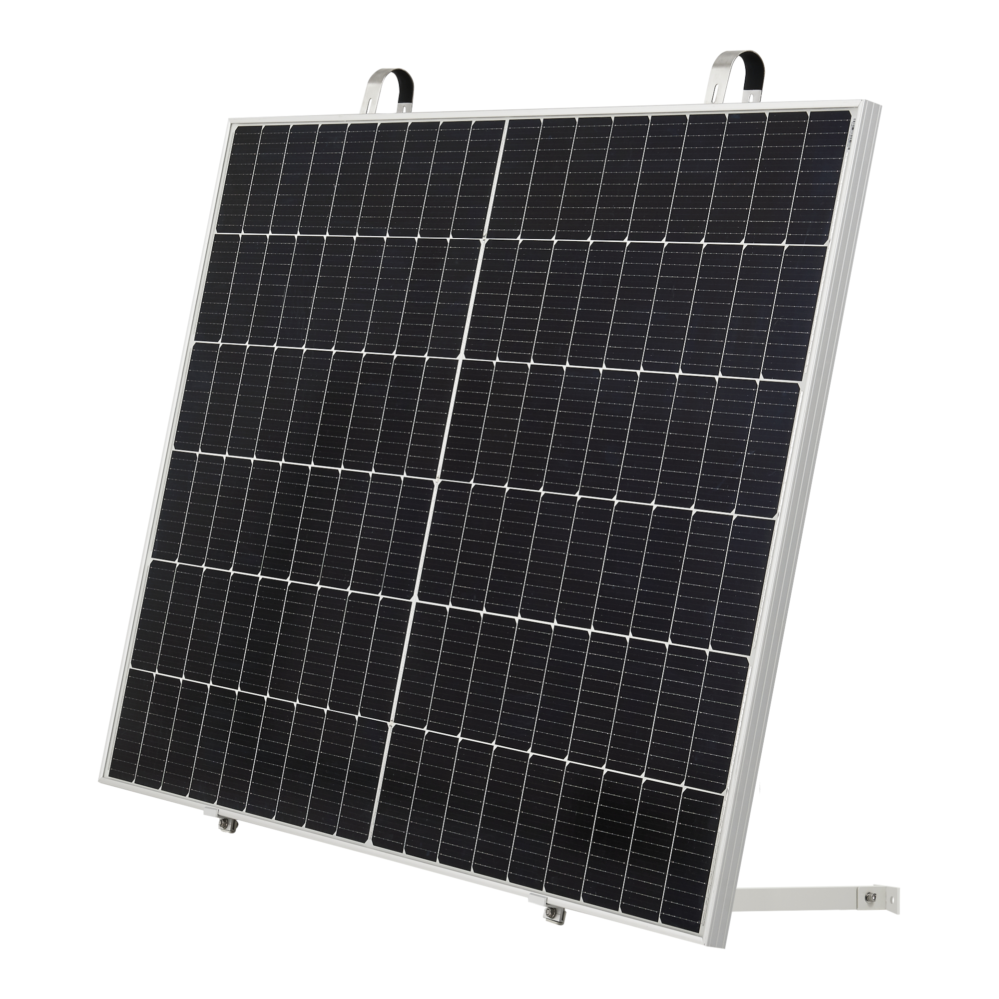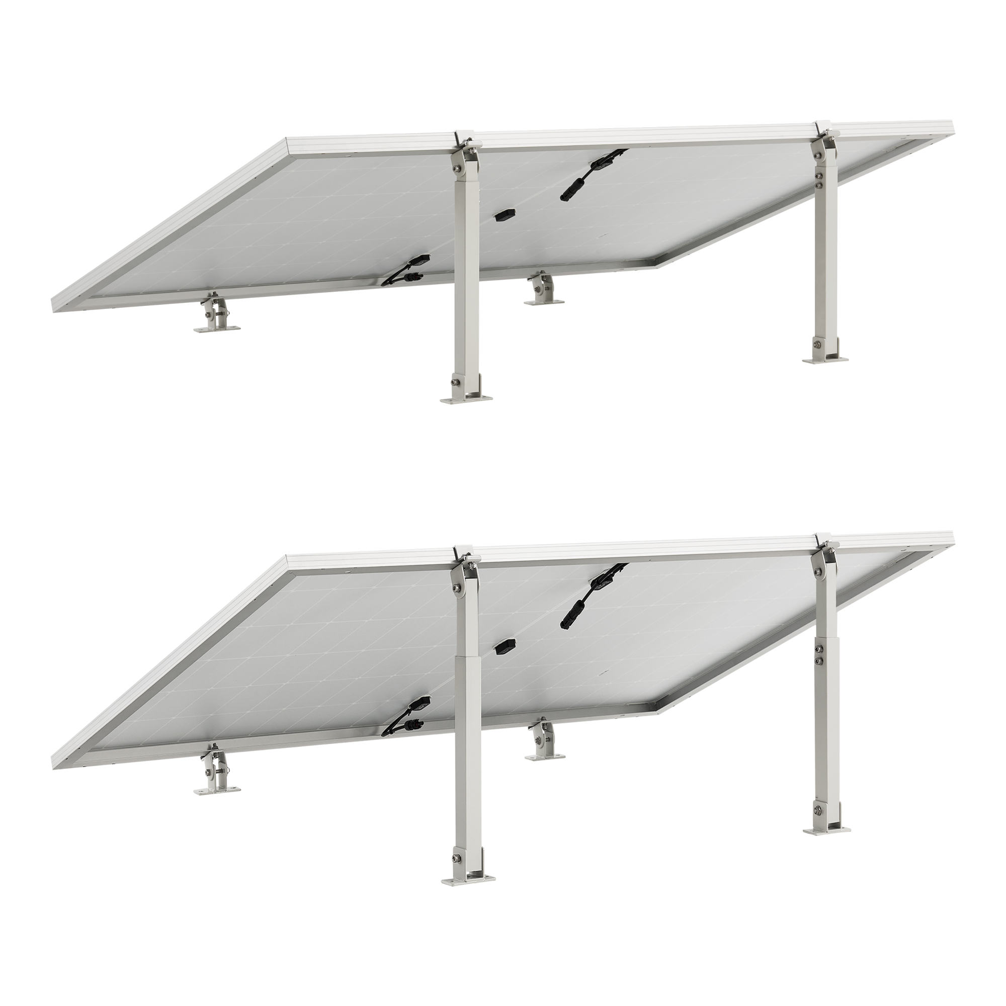 Datorită construcției robuste din oțel și aluminiu, suportul oferă rezistență foarte bună la intemperii și durabilitate în utilizarea de zi cu zi. Picioarele stabile sunt reglabile, astfel încât poți seta ușor un unghi de înclinare între 30° și 45° pentru o expunere solară mai eficientă.