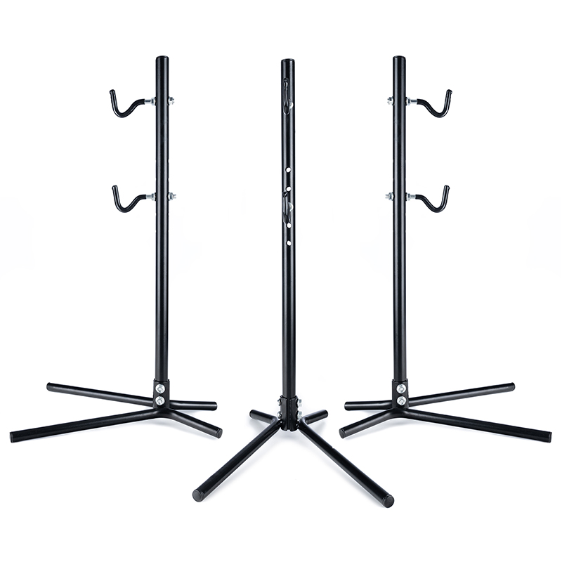 Suportul service pentru biciclete este o solutie practica pentru intretinerea si depozitarea bicicletei in garaj, atelier sau magazin. Datorita structurii stabile din otel si a carligelor cu inaltime reglabila, poti pozitiona bicicleta comod pentru operatiuni precum schimbarea rotii, ungerea lantului sau reglaje generale. Elementele de contact sunt protejate cu cauciuc pentru o sustinere mai sigura.