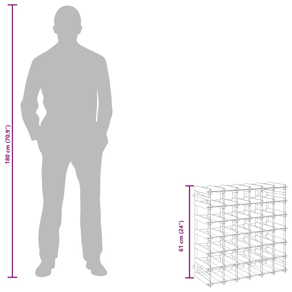Acest suport de sticle de vin poate depozita până la 42 de sticle. Designul său simplu și minimalist adaugă o notă de farmec rustic spațiului dvs de locuit. De asemenea, va fi un cadou minunat pentru prietenii și cunoscuții dvs. iubitori de vin. Fiind fabricat din oțel galvanizat și lemn masiv, acesta este extrem de rezistent! Datorită materialelor de montaj incluse, suportul pentru vin este ușor de asamblat.