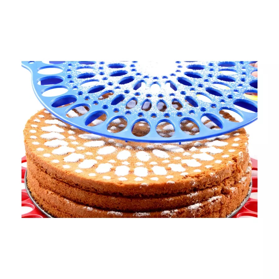 Obține rapid felii egale și un aspect de patiserie cu acest suport și tăietor pentru tort Perfect Home. Funcționează ca șablon de decorare (pentru pudră de zahăr/cacao) și ca ajutor pentru tăierea uniformă, fiind ideal pentru aniversări, sărbători și petreceri.
