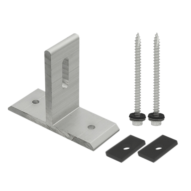 Se foloseste ca element de prindere pentru structura de montaj a panourilor fotovoltaice pe acoperisuri din tabla. Pozitioneaza suportul, regleaza dupa necesitate folosind fanta de reglaj, apoi fixeaza cu suruburile autoforante. Recomandam montajul conform proiectului sistemului si verificarea etanseitatii.