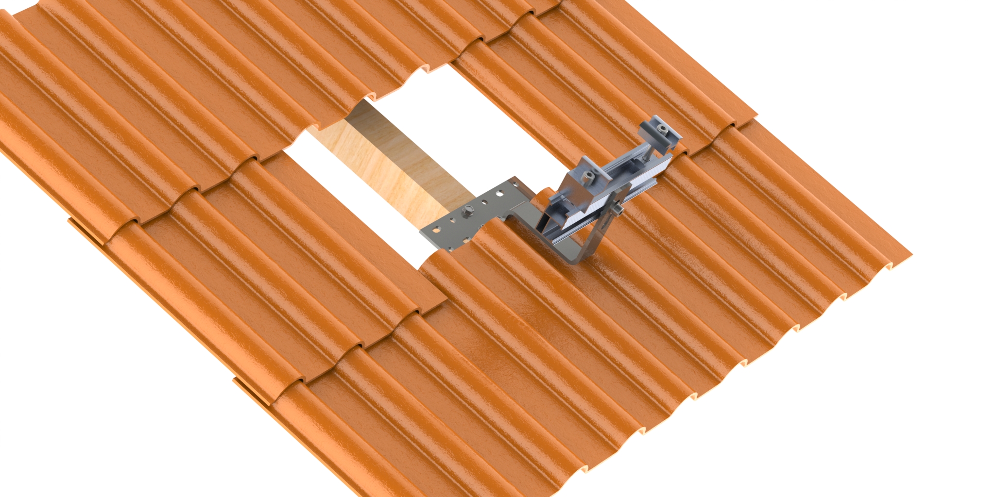 Suport tip Z din inox pentru montaj panou fotovoltaic pe acoperiș cu țiglă