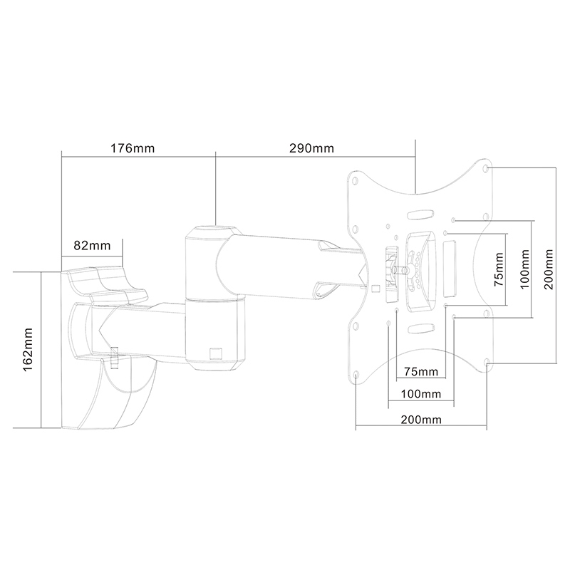 Standard VESA: 50/75/100/200/200X100 mm