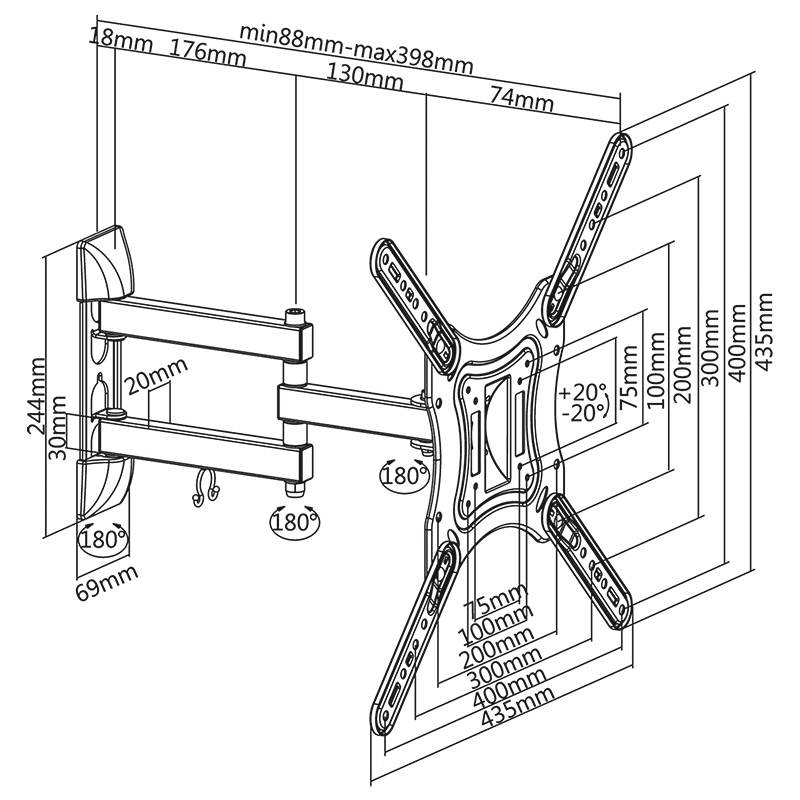 STANDARD VESA 75x75, 100x100, 200x100, 200x200, 400x400 max
