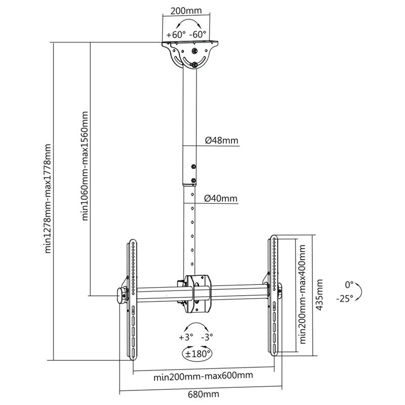Specificatii SUPORT TV TAVAN 40 - 70