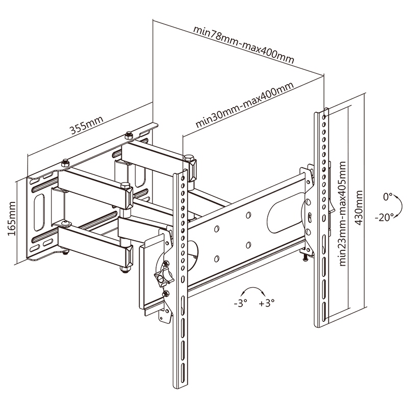 Srandard VESA: 75 x 75, 100 x 100, 100 x 150, 150 x 100, 150 x 150, 200 x 100, 100 x 200, 200 x 200, 300 x 200, 300 x 300, 400 x 200, 400 x 300, 400 x 400