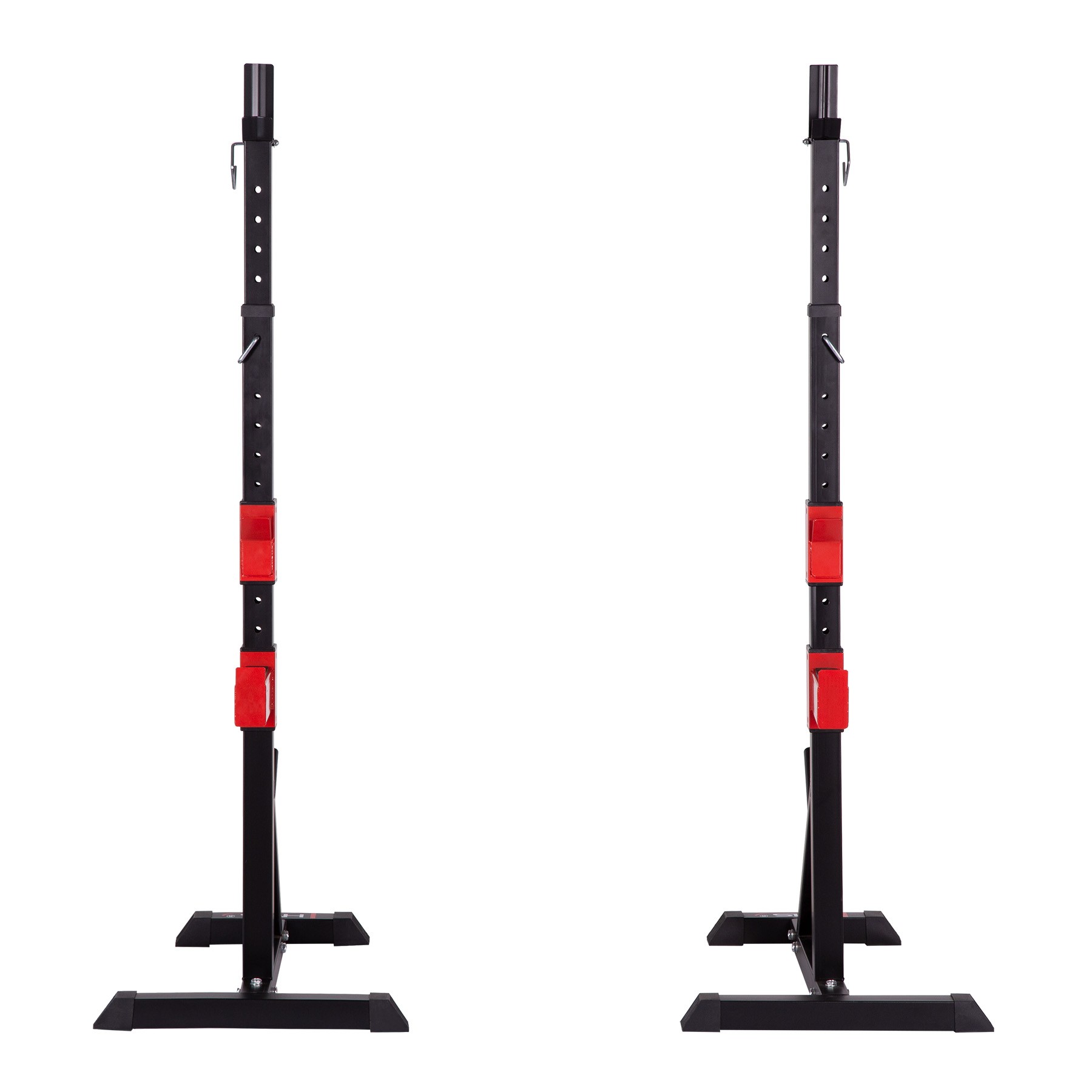 Echipamentul este dotat cu suporturi speciale care ofera siguranta la antrenamentele cu greutati mari. Puteti regla inaltimea de montare a suporturilor, astfel incat sa le puteti adapta nevoilor dumneavoastra. Datorita lor, puteti realiza ridicari cu haltera de pe banca de exercitii sau sa faceti genuflexiuni cu haltera, fara sa va faceti griji ca scapati greutatile.