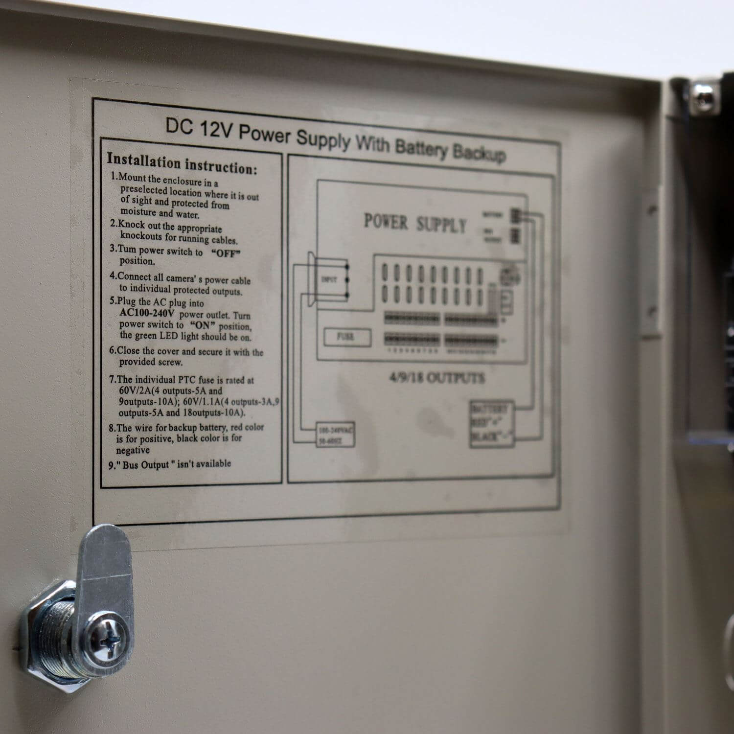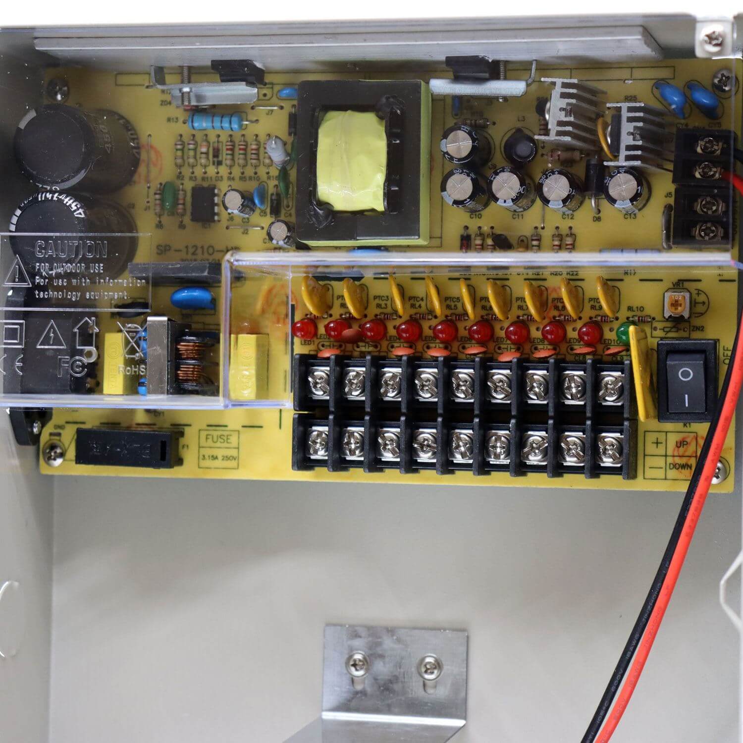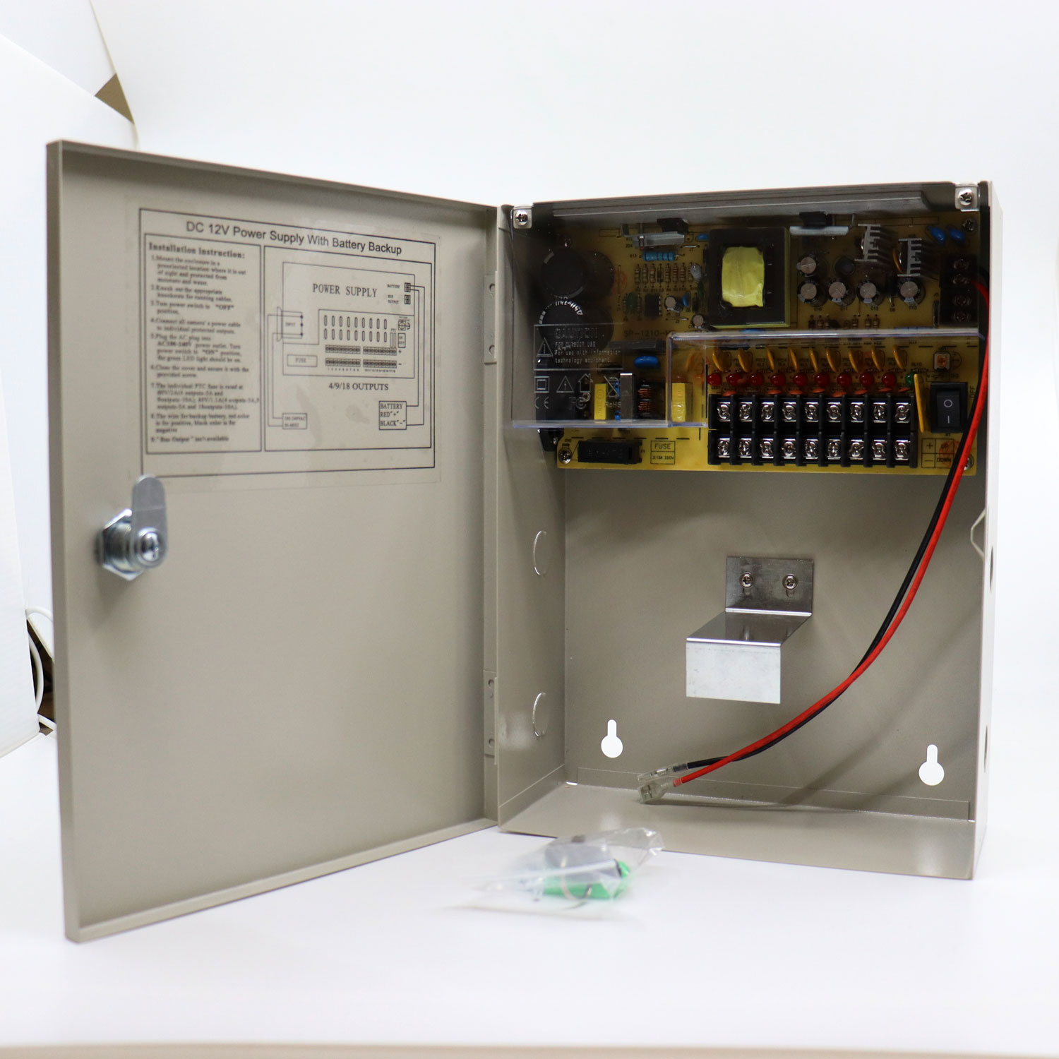 Sursa alimentare cu back-up 10A 12 V cutie metalica 9 iesiri partajate SafetyGuard Surveillance