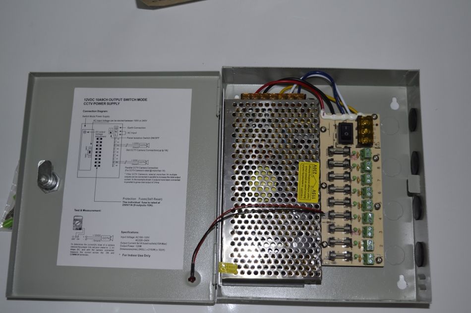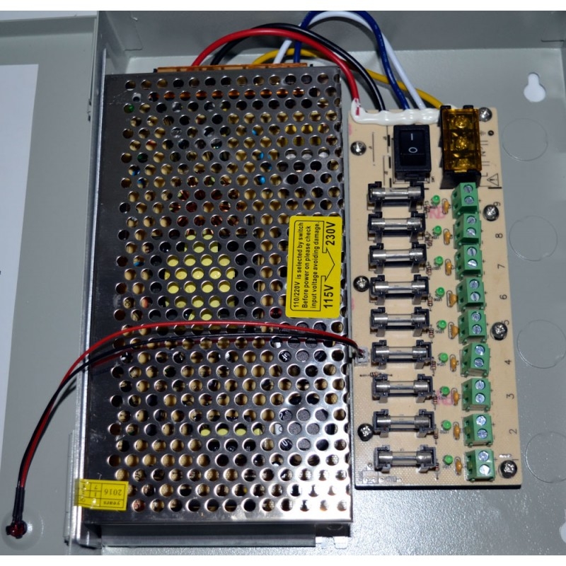 Sursa de alimentare 12V 10A cu 9 iesiri protejate, cutie metalica cu yala
