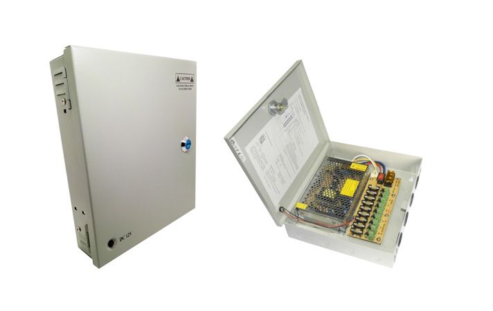 Sursa de alimentare 12V 10A cu 9 iesiri protejate este o alegere practica si sigura pentru sisteme de supraveghere, control acces sau alte echipamente de securitate care necesita alimentare stabila. Modelul este livrat in cutie metalica cu yala, oferind protectie sporita, organizare mai buna a cablajului si un montaj profesional.