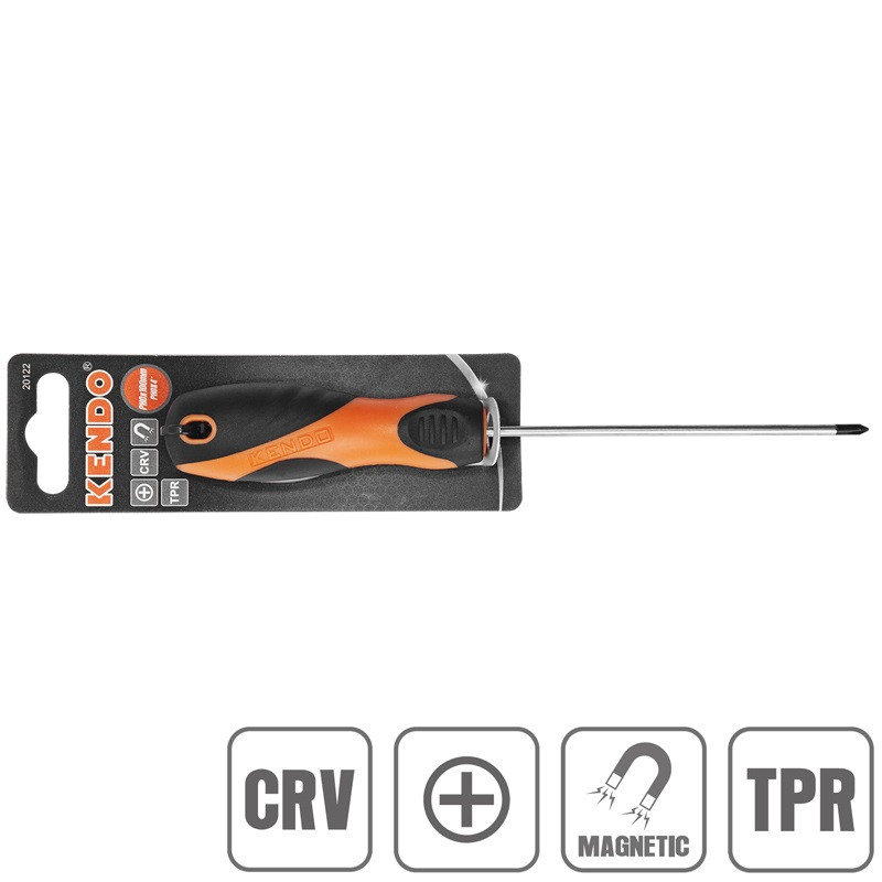 Surubelnita Phillips cu maner din cauciuc TPR in combinatie cu plastic, metal CrV in finisaj mat.