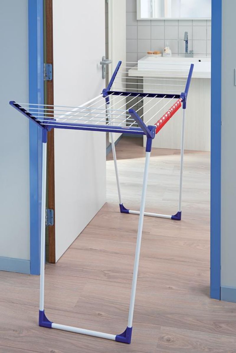 Stabilný sušiak na bielizeň s výklopnými bočnicami, ideálny pre vnútorné aj vonkajšie použitie, šírka sušiaku je iba 55 cm, teda sa s ním aj v rozloženom stave ľahko manipuluje, 15 m sušiacej plochy = až 1,5 práčky bielizne, výška sklápacích bočníc 105 cm , možnosť zavesenia dlhých kusov odevov, vrátane 2 easyclipov na sušenie drobnej bielizne, záruka 5 rokov.