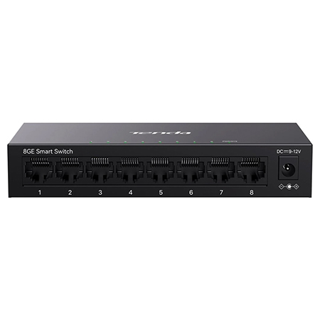Switch-ul de la Tenda are urmatoarele caracteristici principale: este conform cu standardele IEEE802.3/u/ab/x/z si 802.1p/q, dispune de 8 porturi Ethernet 10/100/1000 Base-T si are o tabela MAC de 8K cu functia MAC Auto Learning.