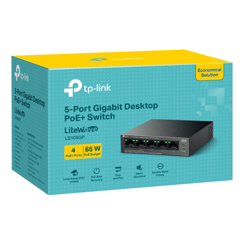 Switch LiteWave, 5 porturi RJ45 Gigabit, 4xPoE+, Unmanaged - TP-Link LS105GP SafetyGuard Surveillance