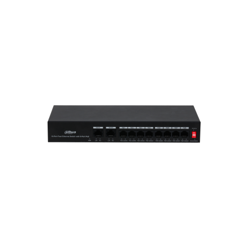 Switch PoE Dahua cu 10 porturi Fast Ethernet, 8 PoE, 250 m, 65W