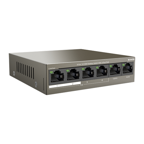 Switch PoE Tenda cu 4 porturi RJ45 si 2 porturi uplink, 58W