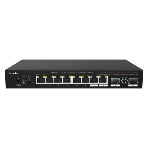 Switch-ul Tenda 2.5G TEM2010F este o solutie excelenta pentru realizarea unei retele de mare viteza in birouri, locuinte moderne, vile sau proiecte wireless. Echipat cu 8 porturi RJ45 2.5 Gigabit si 2 porturi SFP 2.5 Gigabit, acest model permite conectarea rapida a PC-urilor, NAS-urilor, access point-urilor, set-top box-urilor TV si altor echipamente care au nevoie de transfer stabil si performant.