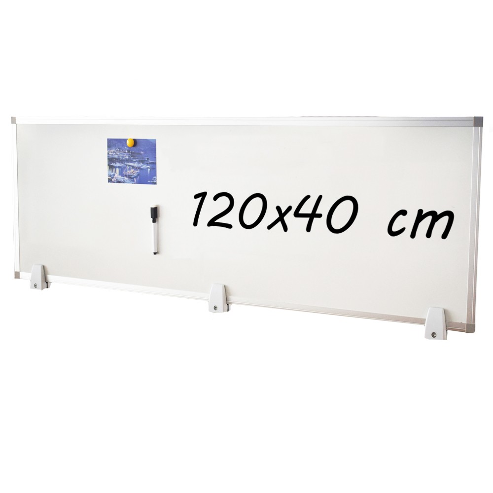 Tablă magnetică albă 40x120 cm, dublă față, cu ramă aluminiu și suport birou