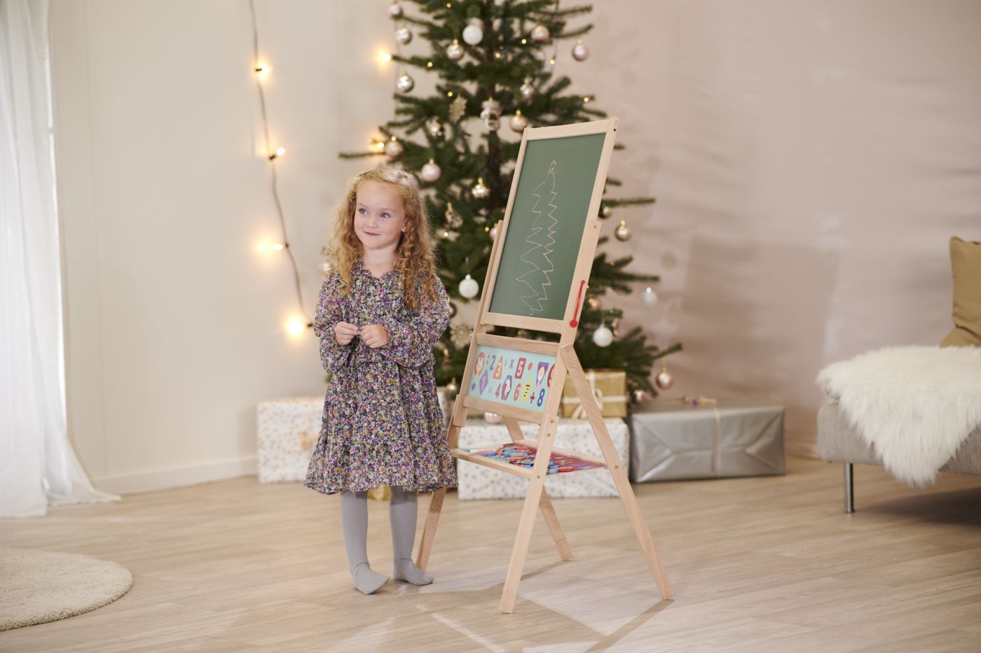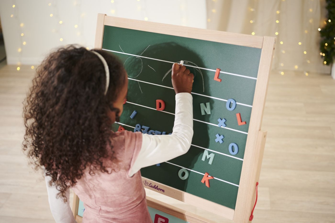 Tabla magnetica din lemn Eichhorn este alegerea ideala pentru copiii care iubesc sa deseneze, sa scrie si sa invete prin joaca. Realizata din lemn de fag de calitate, aceasta tabla educativa pentru copii ofera mai multe moduri de utilizare: pentru creta, pentru litere magnetice si ca suport tip tabla de afisaj. Designul sau stabil si compartimentul practic de depozitare o fac potrivita atat pentru camera copilului, cat si pentru gradinita sau spatii de joaca.