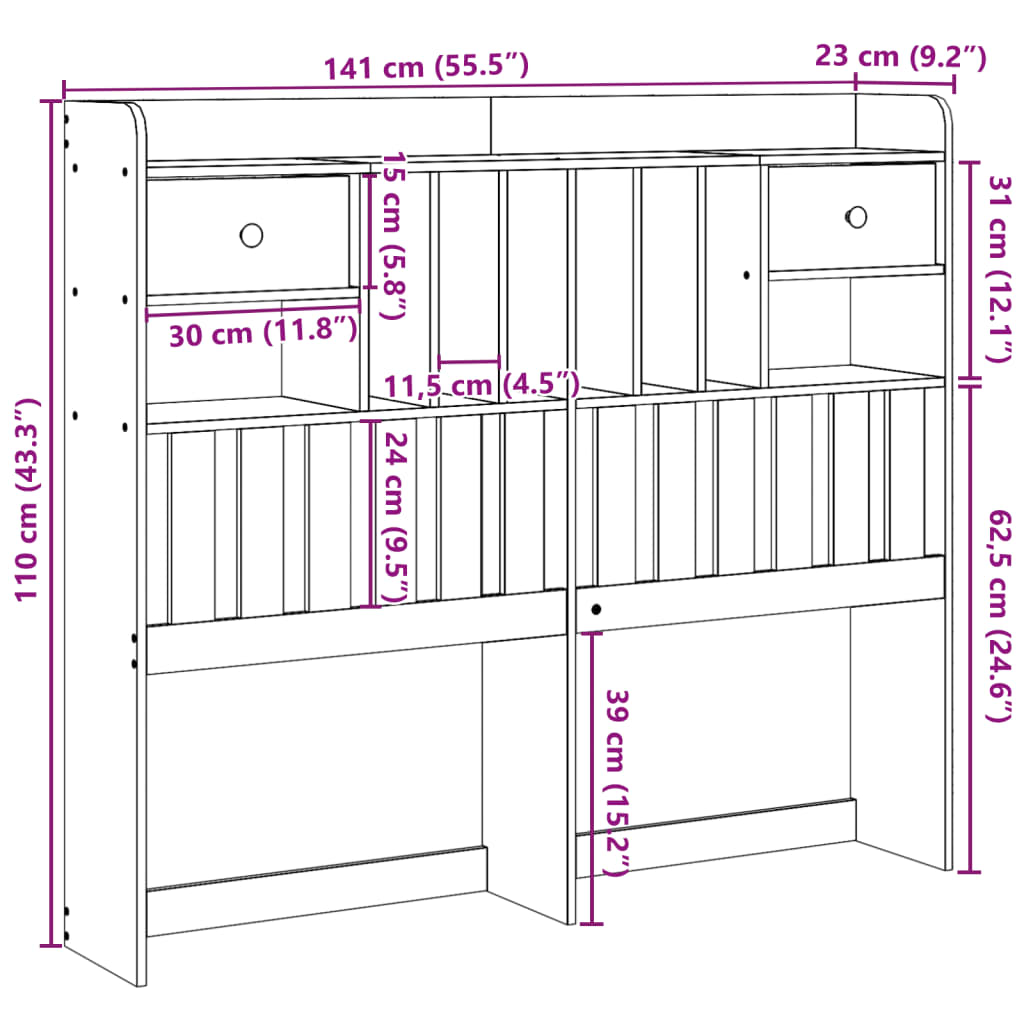 Tăblie de pat cu depozitare maro ceruit, 135 cm, lemn masiv pin GartenMobel Dekor