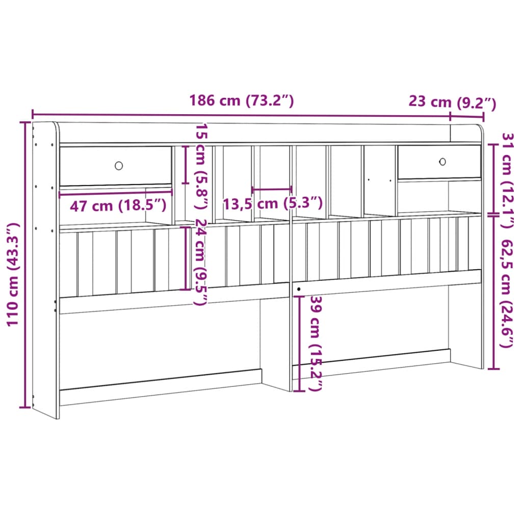 Tăblie de pat cu depozitare maro ceruit, 180 cm, lemn masiv pin GartenMobel Dekor