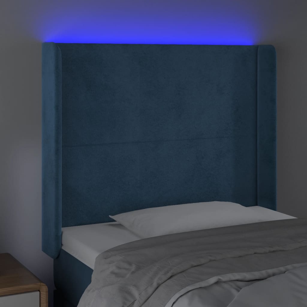 Tăblie de pat cu LED, albastru închis, 93x16x118/128cm, catifea GartenMobel Dekor