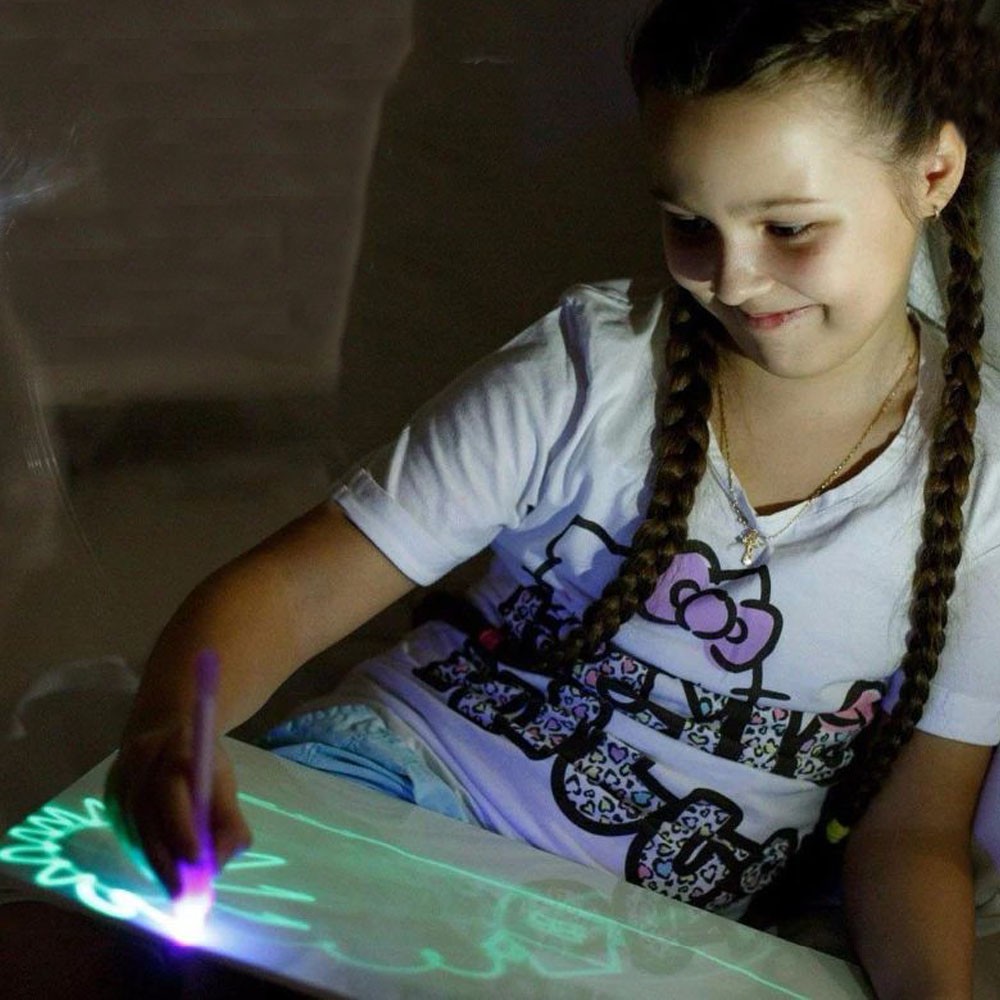 Tăbliță magică fosforescentă A3 rescriptibilă, cu marker UV invizibil