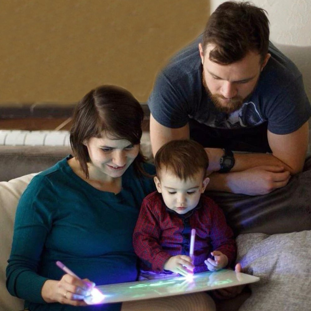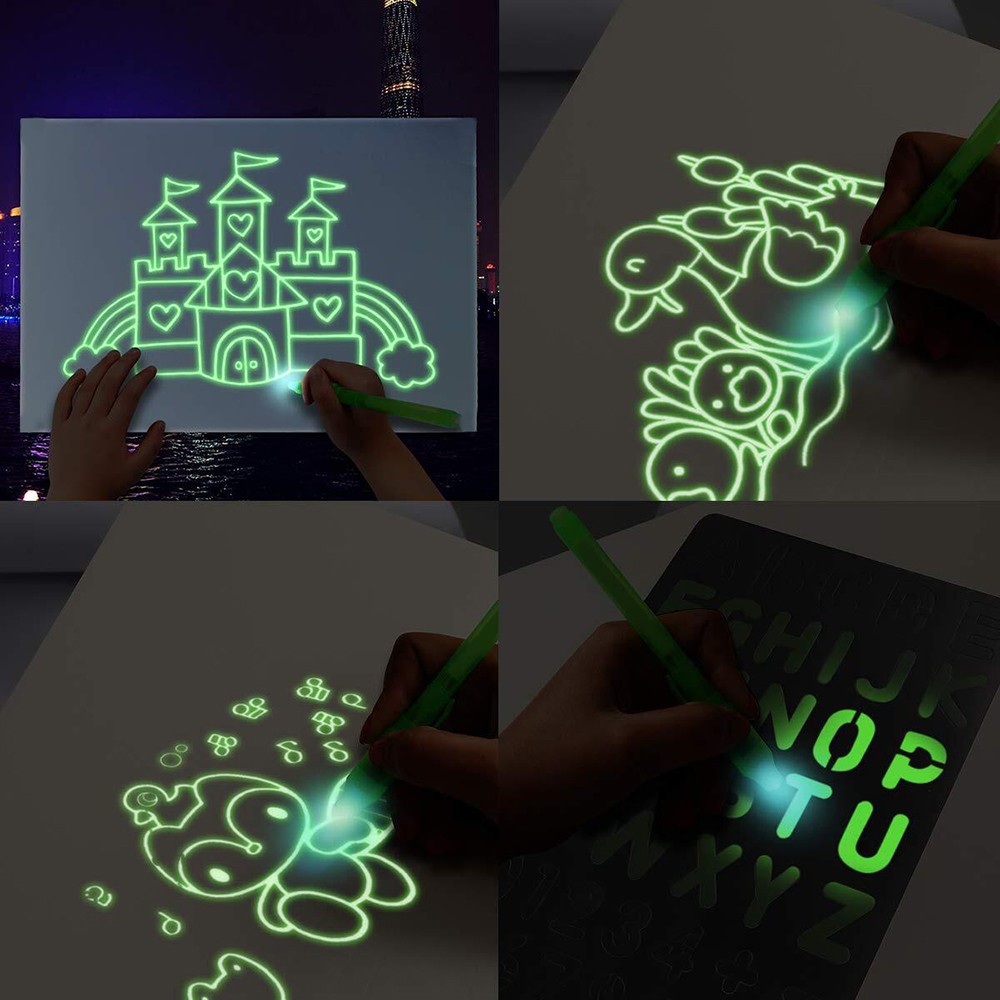 Transformă joaca și învățarea într-o experiență spectaculoasă cu această tăbliță magică fosforescentă A3, pe care poți scrie cu marker UV invizibil. Mesajele devin vizibile atunci când aprinzi lumina UV, iar tabla luminează intens în întuneric pentru un efect „wow”.