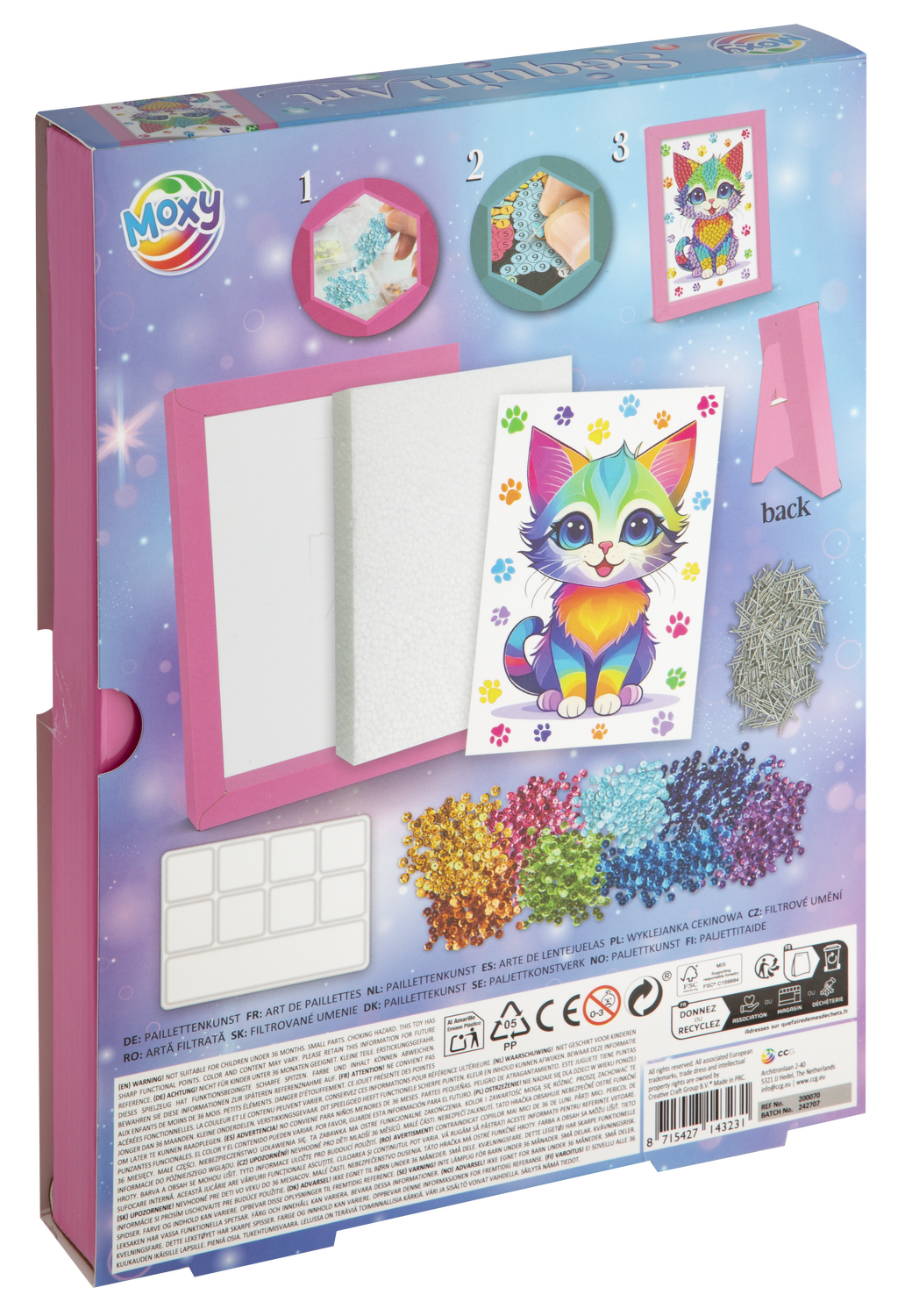 Imagineaza-ti un tablou vesel si colorat, realizat din paiete stralucitoare, care prinde viata sub forma unei pisicute!