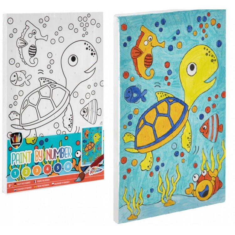 Tablou pictat pe numere cu Broscuta testoasa pentru copii, set creativ