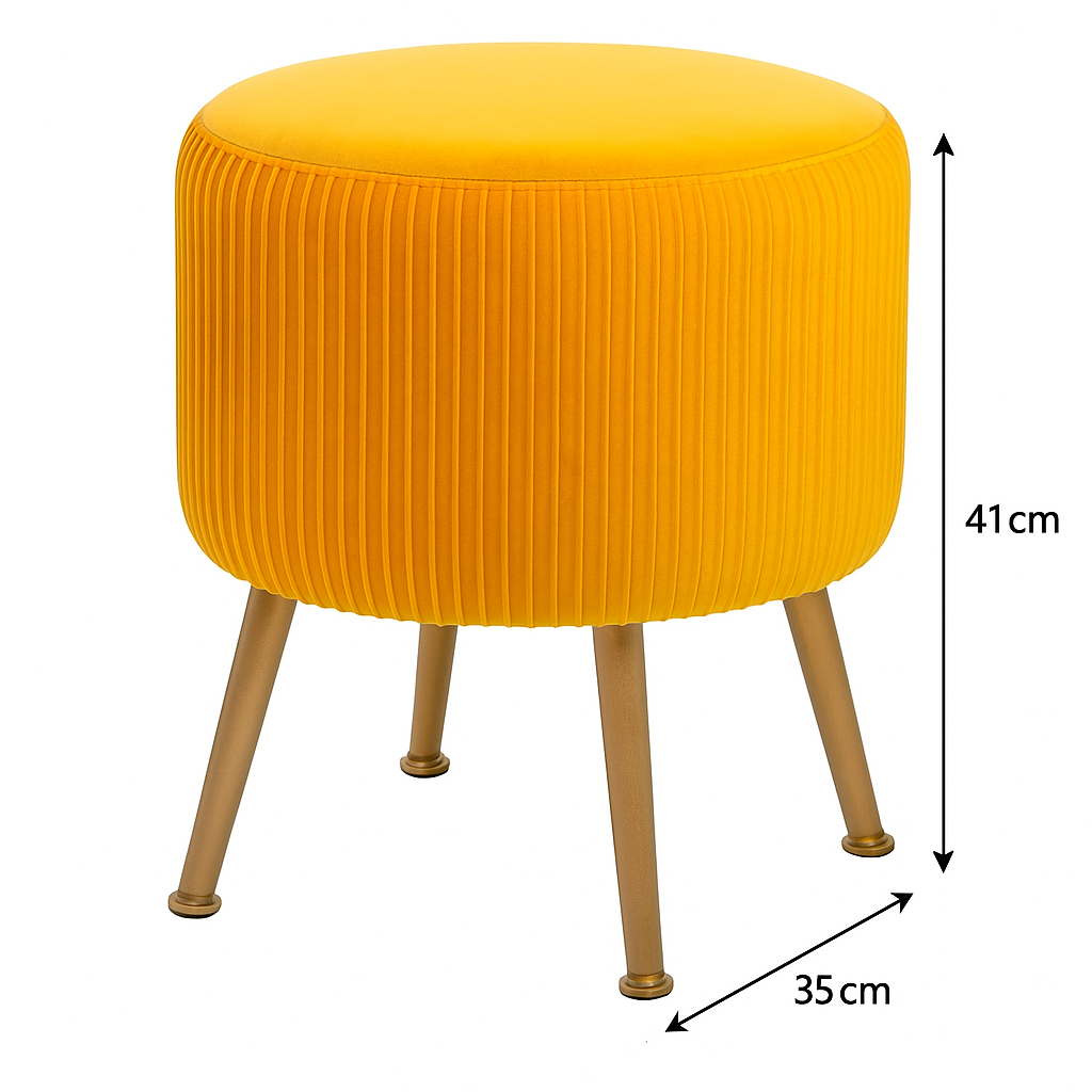 Taburet Atmosphera Solaro rotund cu baza aurie, 35x41 cm, galben mustar