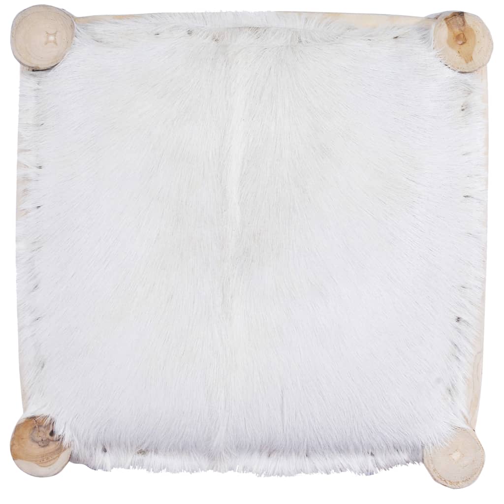 Scaunul de bar are un cadru din lemn de tec masiv, ceea ce îl face stabil și durabil. Șezutul este tapițat cu piele de capră 100% autentică, fiind astfel moale la atingere și confortabil. Modelul natural de piele face ca fiecare piesă să fie unică și ușor diferită de următoarea.