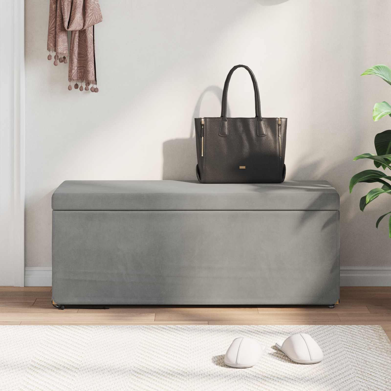Taburet Gri deschis Catifea și lemn stratificat GartenMobel Dekor
