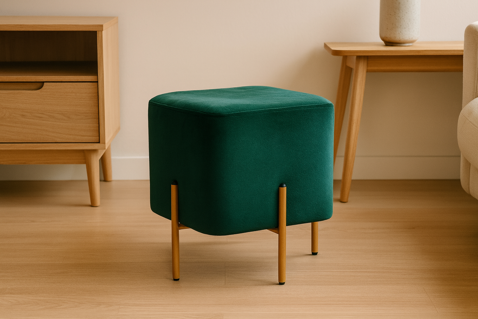 Taburet patrat, tapitat cu stofa, picioare otel, sarcina 100kg, 35x35x40 cm, verde Household NewTrend